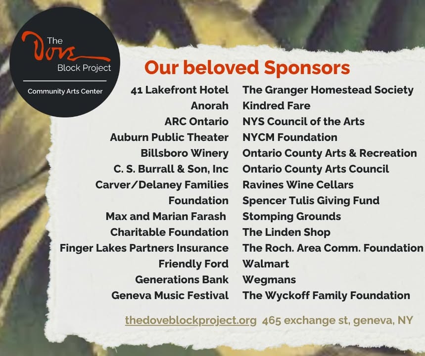 Doves Block Project thanks Geneva community, creatives, and diverse sponsors for support.